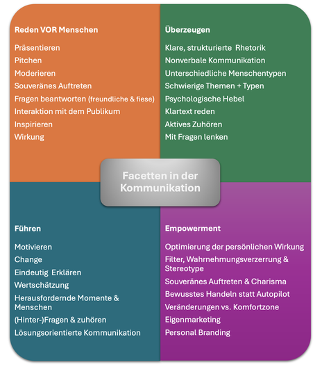Ich tue, was ich liebe, und ich liebe, was ich tue: Menschen wie Sie dabei unterstützen, ihre Kommunikationsfähigkeiten zu verbessern. Kommunikation ist weit mehr als nur zufällige Worte und Bewegungen von Körper und Gesicht. Kommunikation ist die Fähigkeit, Worte, Stimme und Körper bewusst einzusetzen, um das Gegenüber zu motivieren, zu überzeugen und zu inspirieren etwas Bestimmtes zu tun. Es ist eine facettenreiche Fähigkeit, die jeder lernen kann. Und einmal erlernt, kann man sie jederzeit aktiv einsetzen. Sei es bei einer Präsentation, einem Gespräch, einer Verhandlung, usw. Unabhängig wie kompliziert die Situation, oder die andere Seite sein mag. Sie wissen, was Sie tun, und Sie können es entspannt genießen. Ich freue ich mich darauf, Sie auf dieser Lern- & Erfahrungs-Reise zu begleiten.